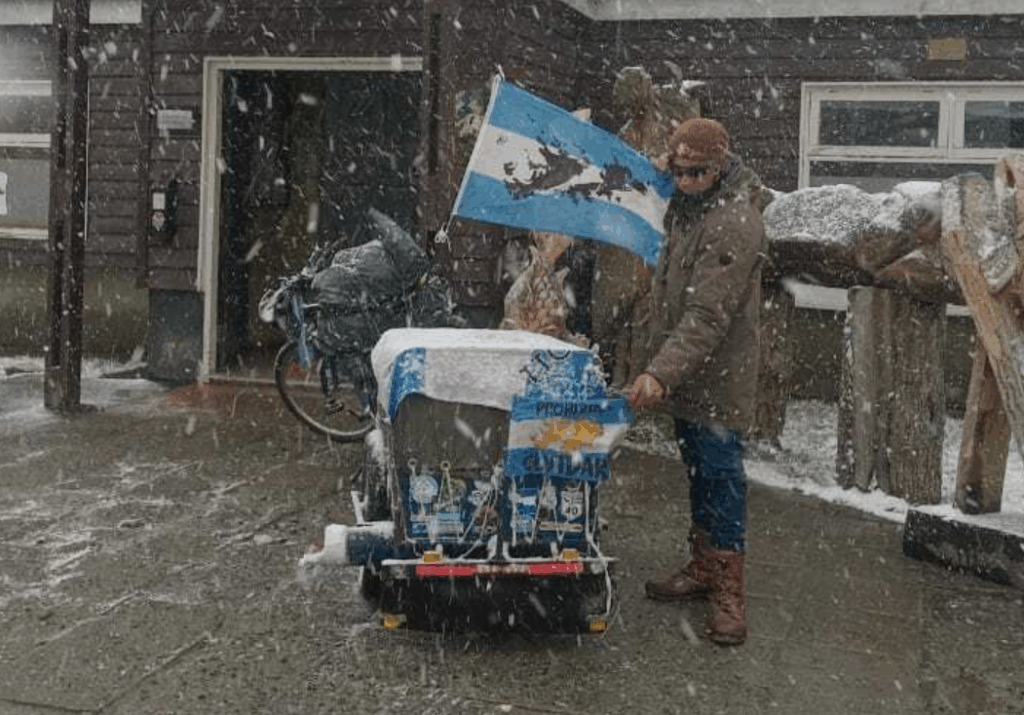 Con nieve de frente y ráfagas patagónicas como compañía, Víctor Hugo Guerrero arribó a Tolhuin en su travesía en bicicleta por el país. Partió el 1 de febrero desde San Juan con un propósito que lo guía en cada kilómetro: mantener viva la memoria de Malvinas.