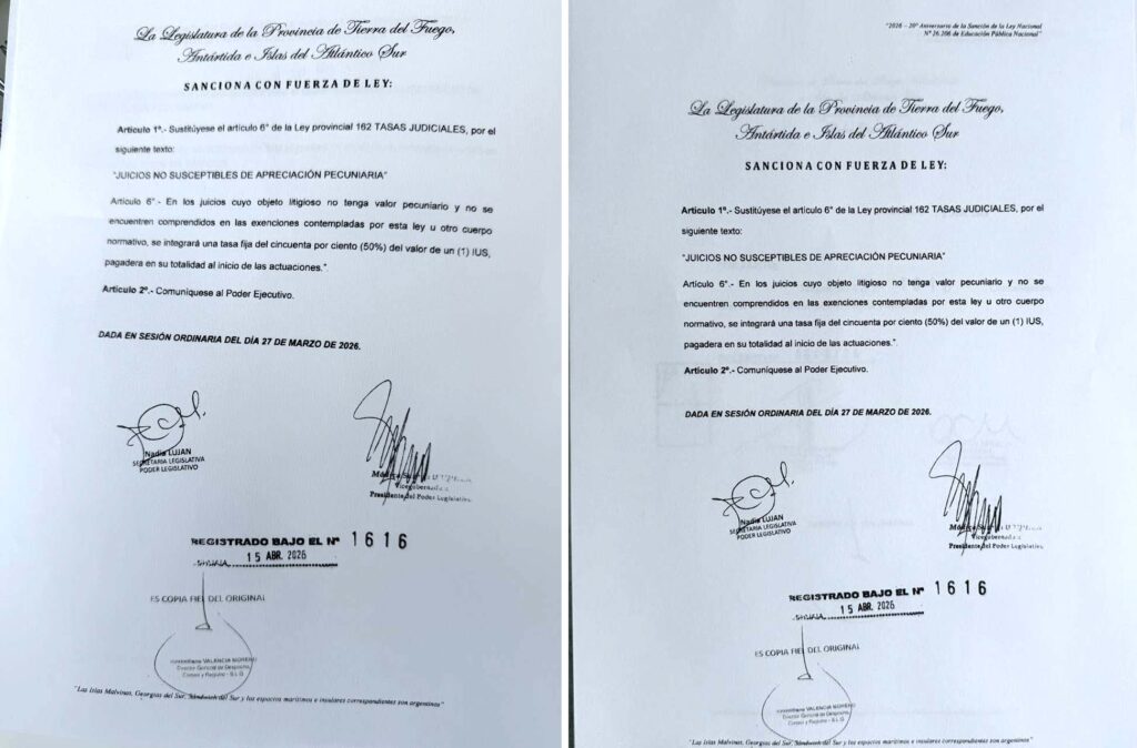 El Gobierno de Tierra del Fuego actualizó los montos de las tasas judiciales aplicables a procesos que no tienen un valor económico determinado, a partir de una modificación en la normativa vigente.