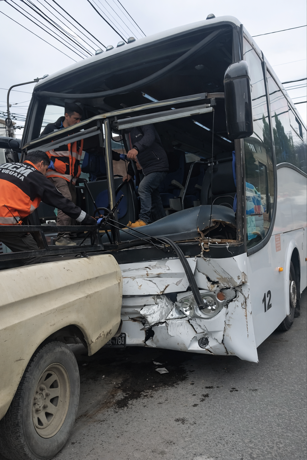 Según informó la Policía Provincial, el accidente involucró a un camión volquete Iveco Trakker y a un microbús Mercedes Benz 500M. Como consecuencia del impacto, el conductor del microbús, un hombre de 32 años, debió ser trasladado al Hospital Regional Ushuaia para recibir atención médica.