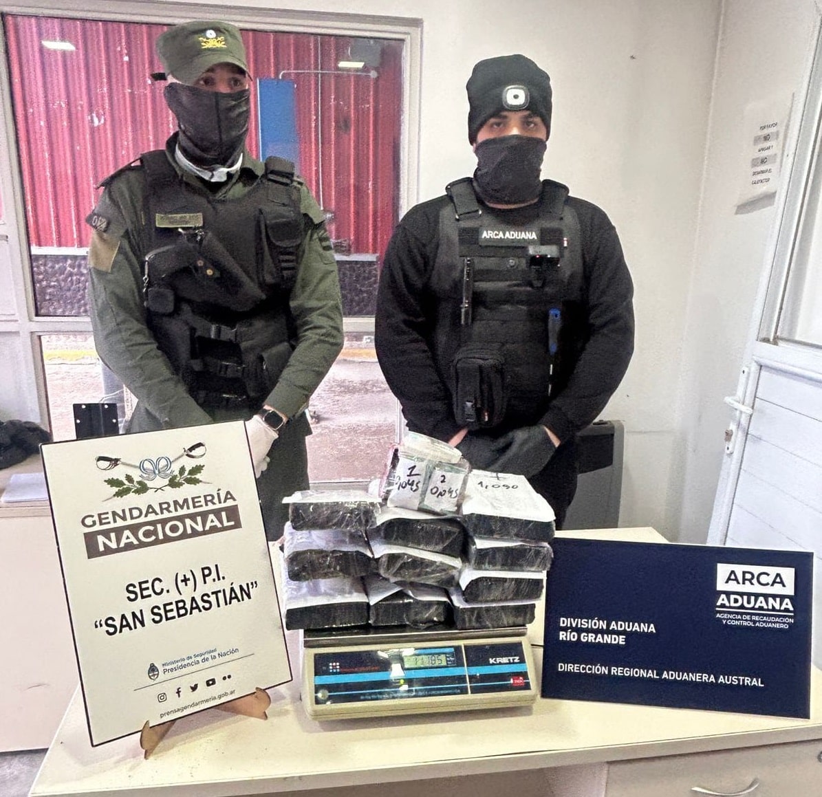 El operativo fue detectado por personal de Gendarmería Nacional y Aduana, que pusieron al descubierto la droga oculta dentro del vehículo del acusado mientras cruzaba la frontera por San Sebastián, una ruta habitual de control aduanero en la región.