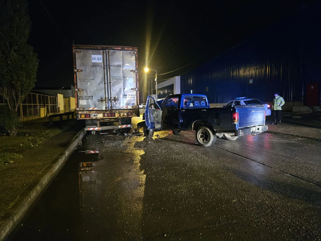 Conductor chocó contra un acoplado estacionado y quedó atrapado en su camioneta en Río Grande