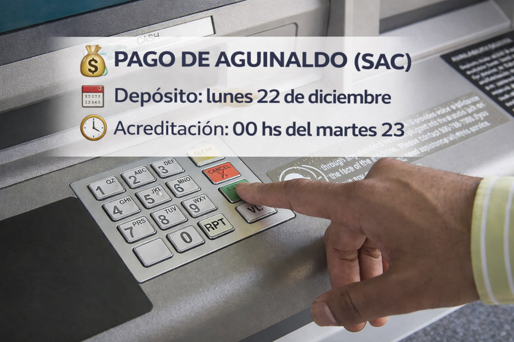Los montos depositados estarán disponibles en las cuentas bancarias a partir de las 00 horas del martes 23 de diciembre, momento en el que se efectivizará la acreditación del aguinaldo.