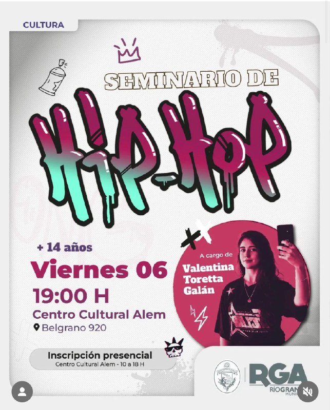 La Subsecretaría de Cultura del Municipio de Río Grande llevará adelante un Seminario de Hip Hop este viernes 6 de febrero a las 19 horas, en las instalaciones del Centro Cultural Alem, ubicado en Avenida Belgrano 920.