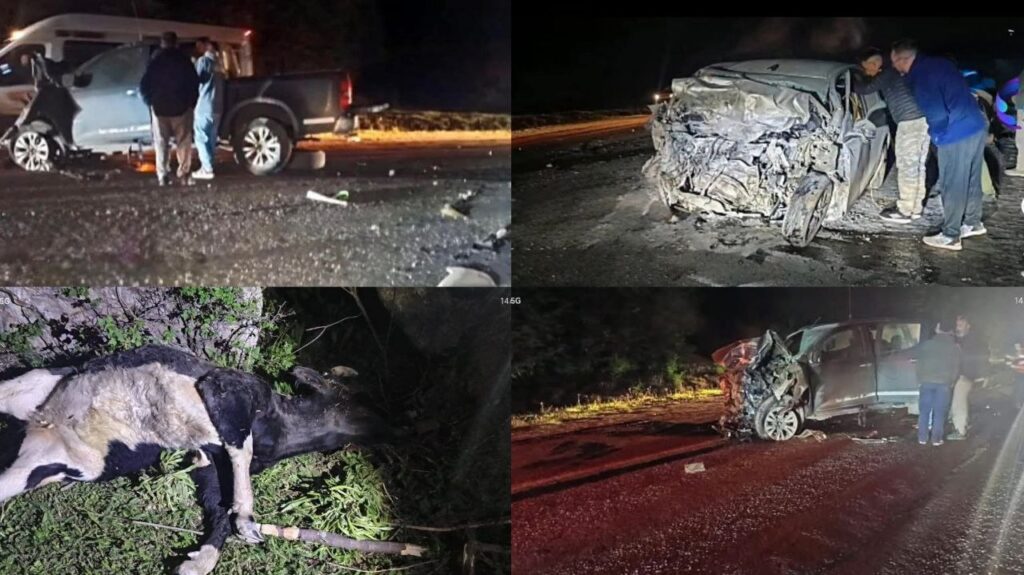 Según informó la Policía, el hecho se habría desencadenado cuando una camioneta Chevrolet S10 perteneciente a un organismo provincial impactó contra un vacuno que se encontraba sobre la calzada. Tras perder el control, el vehículo oficial terminó colisionando de frente contra un Toyota Etios que circulaba en sentido contrario.
