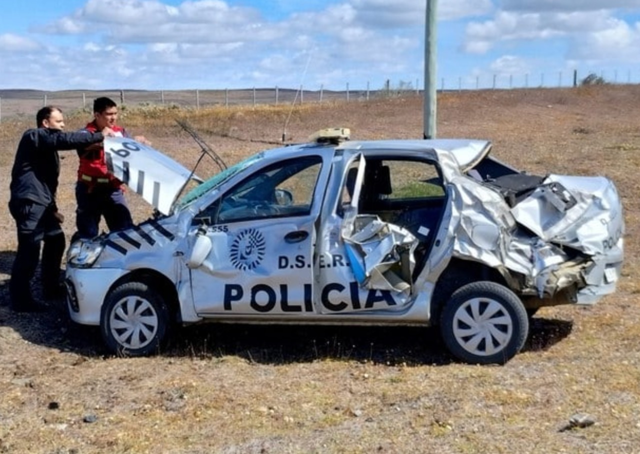 Según relataron los efectivos que iban a bordo, un guanaco cruzó de forma imprevista en la ruta, lo que provocó que el conductor perdiera el control del móvil y terminara volcando.