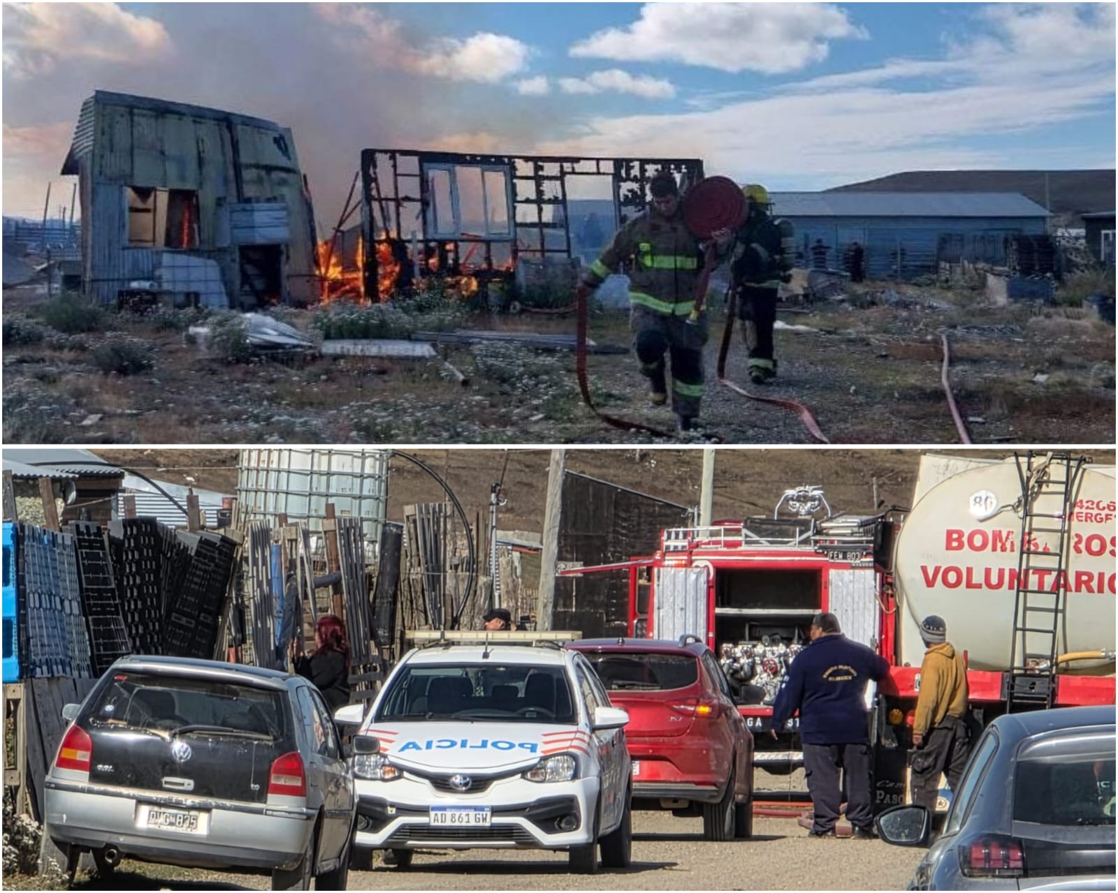 En el lugar trabajaron de manera conjunta dotaciones de Bomberos de la Policía y Bomberos Voluntarios, quienes realizaron tareas de control y extinción del fuego para evitar su propagación hacia viviendas linderas.