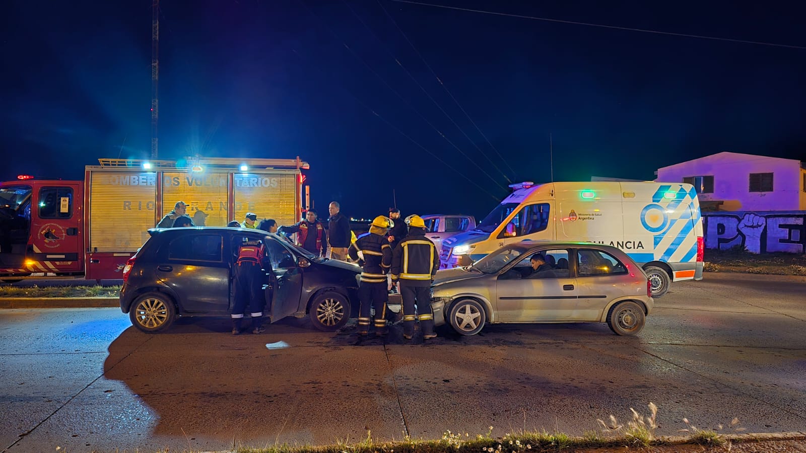 RÍO GRANDE, 5 de abril de 2026. — Un siniestro vial registrado durante la noche del sábado en la ciudad de Río Grande dejó como saldo una mujer trasladada al hospital con lesiones leves y el secuestro de uno de los vehículos involucrados.