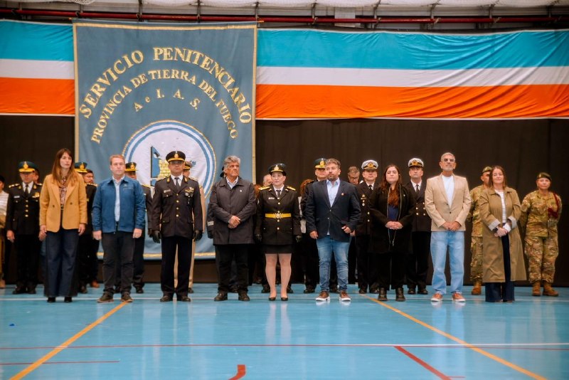La ceremonia de egreso de la 14ª promoción se realizó en el anexo del microestadio de la ciudad de Río Grande y fue encabezada por el secretario de Enlace con las Fuerzas de Seguridad del Gobierno provincial, José Díaz, junto al director provincial del Servicio Penitenciario, Ariel Ciares.