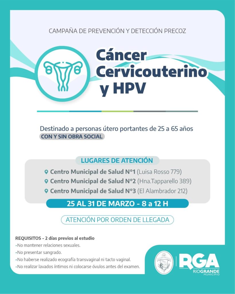 En el marco del Día Mundial de la Prevención del Cáncer de Cuello de Útero, el Municipio de Río Grande anunció el lanzamiento de una nueva campaña de prevención y detección precoz de cáncer cervicouterino (CCU) y Virus del Papiloma Humano (HPV), con el objetivo de fortalecer el acceso a controles y promover el cuidado de la salud.