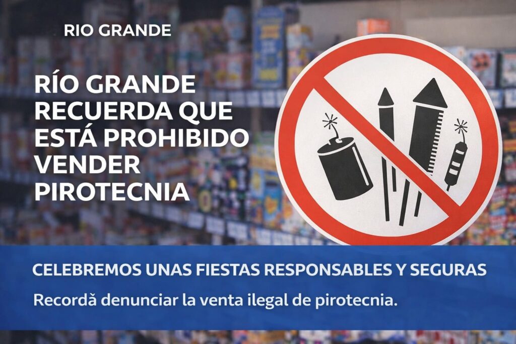 De cara a las celebraciones de fin de año, el Municipio de Río Grande reiteró la prohibición total del uso, venta y comercialización de artículos pirotécnicos en el ámbito de la ciudad, una medida que apunta a garantizar la seguridad de la población y a proteger el bienestar de personas y mascotas.