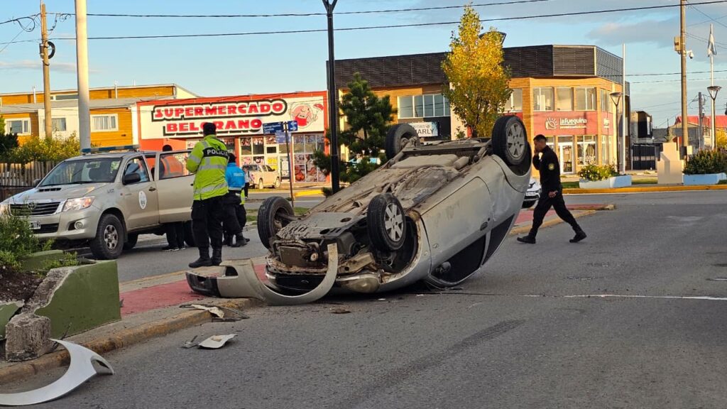 Una conductora resultó herida este martes por la mañana luego de protagonizar un accidente de tránsito con vuelco en la ciudad de Río Grande. El hecho ocurrió en la intersección de la avenida Perón y la calle Chamorro, donde intervino personal de la Comisaría Segunda.
