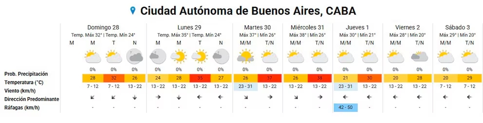 El área de altas temperaturas ahora abarca el sur de Entre Ríos, Santa Fe y Córdoba, e incluye también zonas como el norte de La Pampa y Misiones, el este de Mendoza y el sur y oeste de San Luis. Aunque en la Ciudad y el conurbano bonaerense se esperan máximas alrededor de 32 °C con mínimas de 23 °C, no serán las zonas más castigadas por las marcas térmicas.