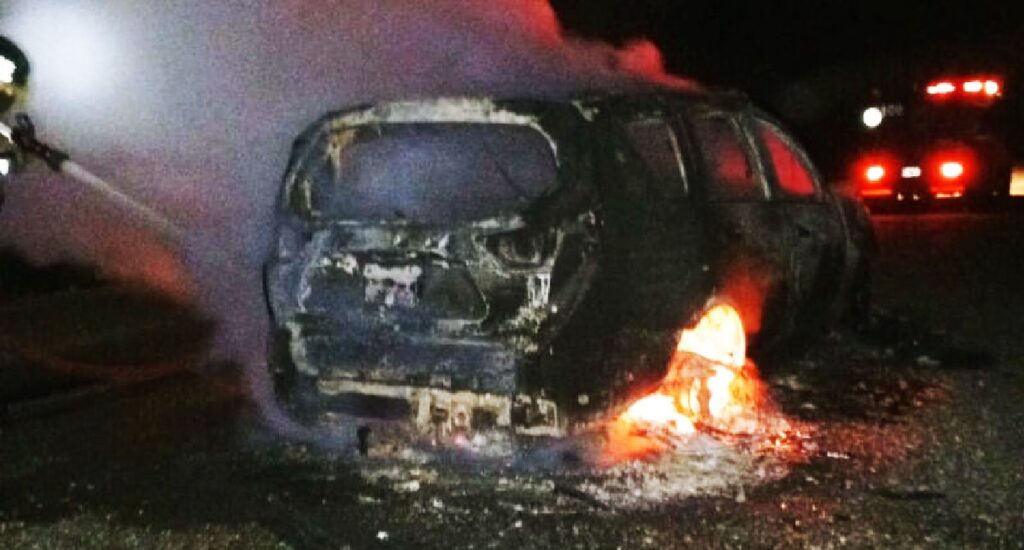Un auto se incendió completamente en la Ruta 3, cerca de Tolhuin