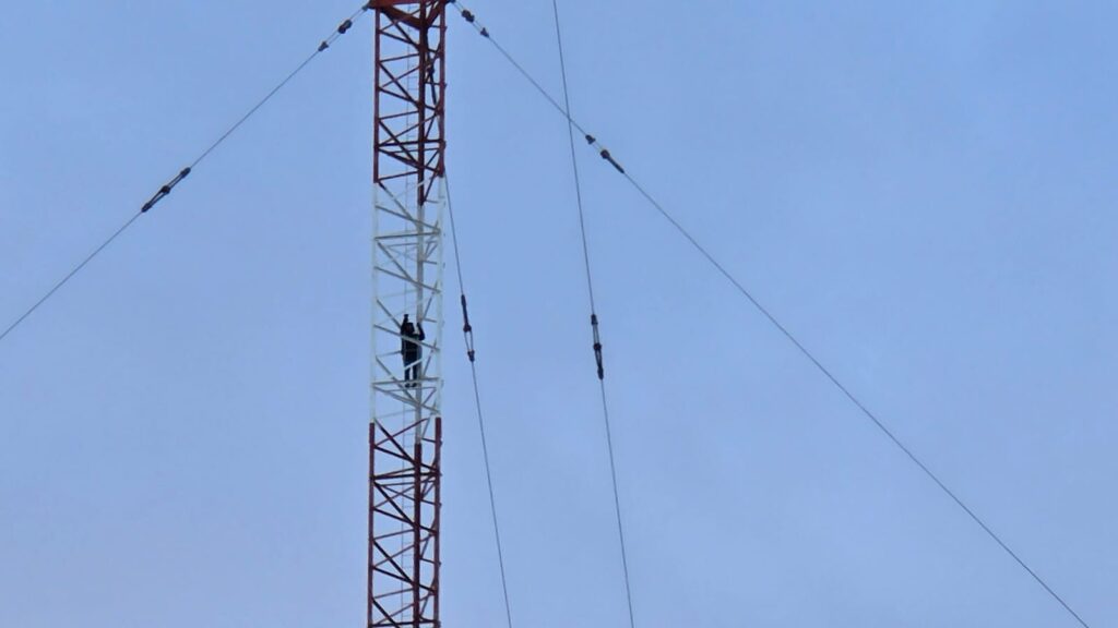 Un hombre escaló la antena de Radio Nacional en Río Grande para reclamar por el contacto con sus hijas