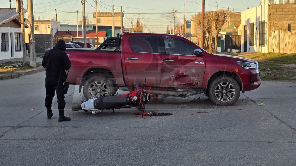 Al arribar al lugar, los efectivos constataron que los vehículos involucrados eran una camioneta Toyota Hilux de color rojo y una motocicleta Honda roja y negra.