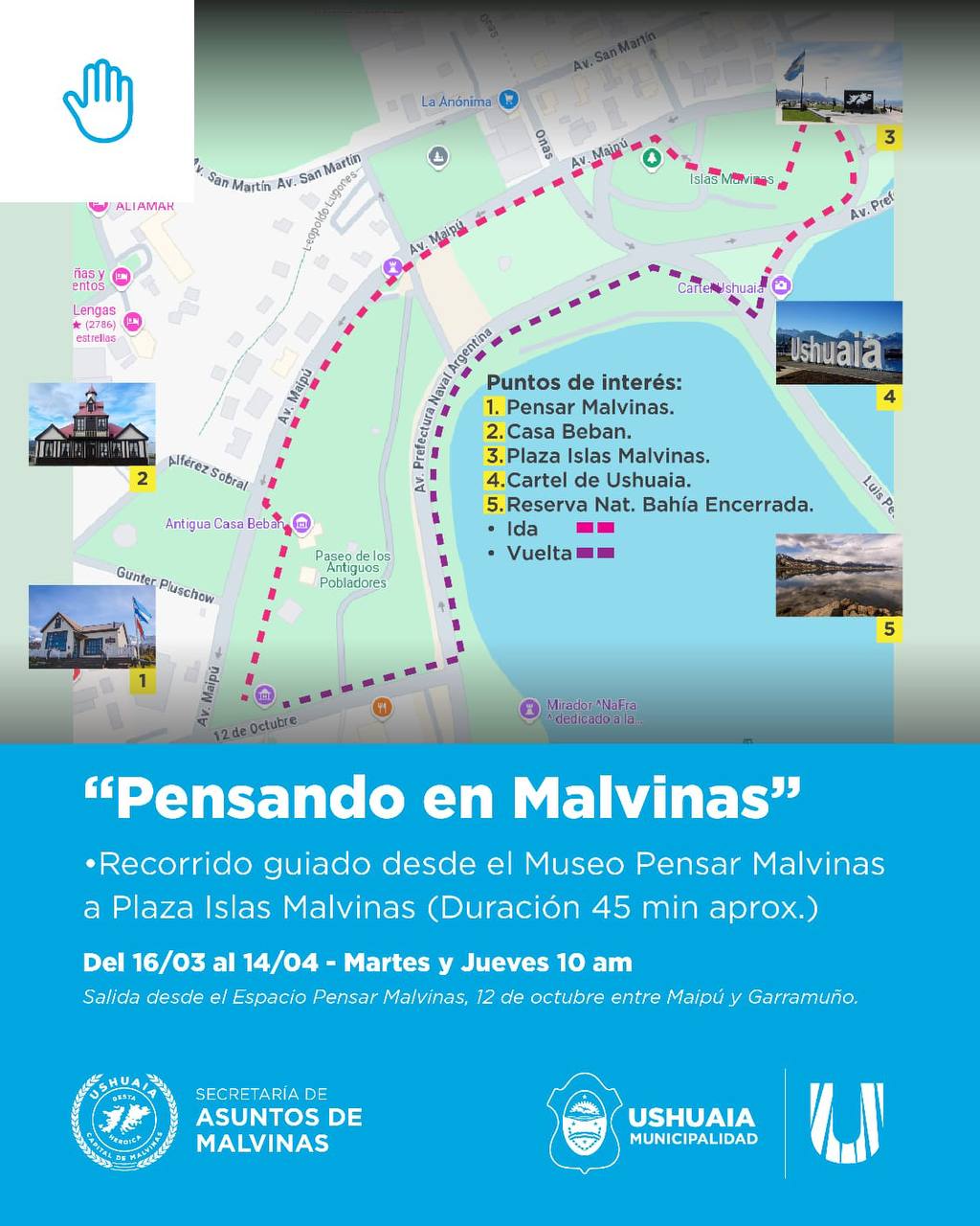La Secretaría de Asuntos Malvinas de la Municipalidad de Ushuaia implementará un ciclo de visitas guiadas por distintos puntos de la ciudad con el objetivo de difundir la historia y el significado de la causa Malvinas, así como su vínculo con la identidad local.