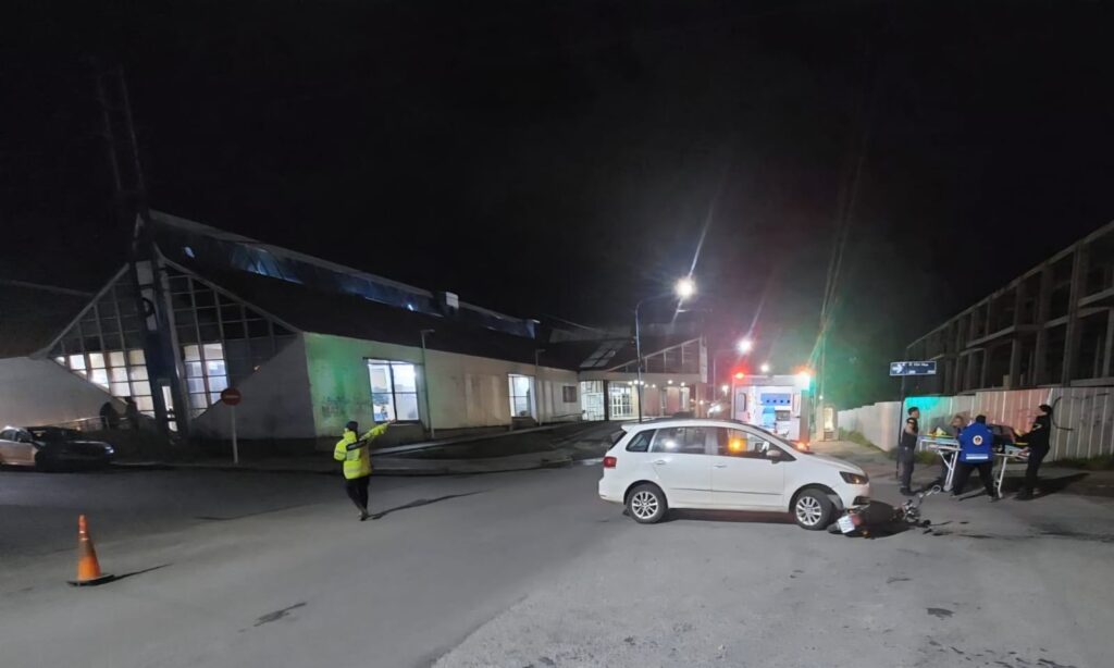 Un accidente de tránsito se registró en la noche del viernes en la ciudad de Ushuaia, donde una motociclista debió ser trasladada al hospital tras colisionar con un automóvil en una intersección céntrica.
